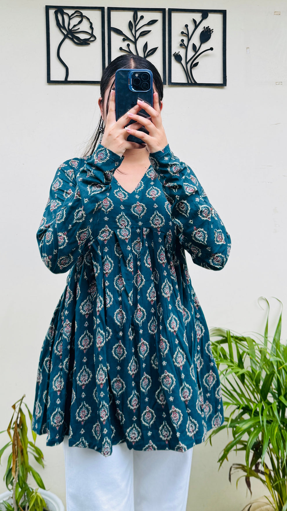 A Tiered Alya Cut peplum Top. It's perfect for all sessions and complements all body shapes. Designed for comfort, Pair it with Treggings for a stylish and cozy ensemble.