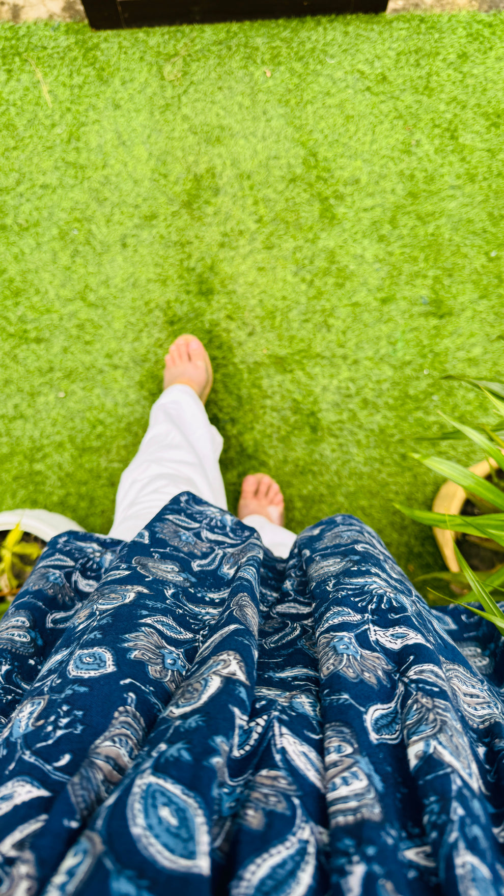 Cotton Flared Blue Aliacut Floral Print Peplum Top