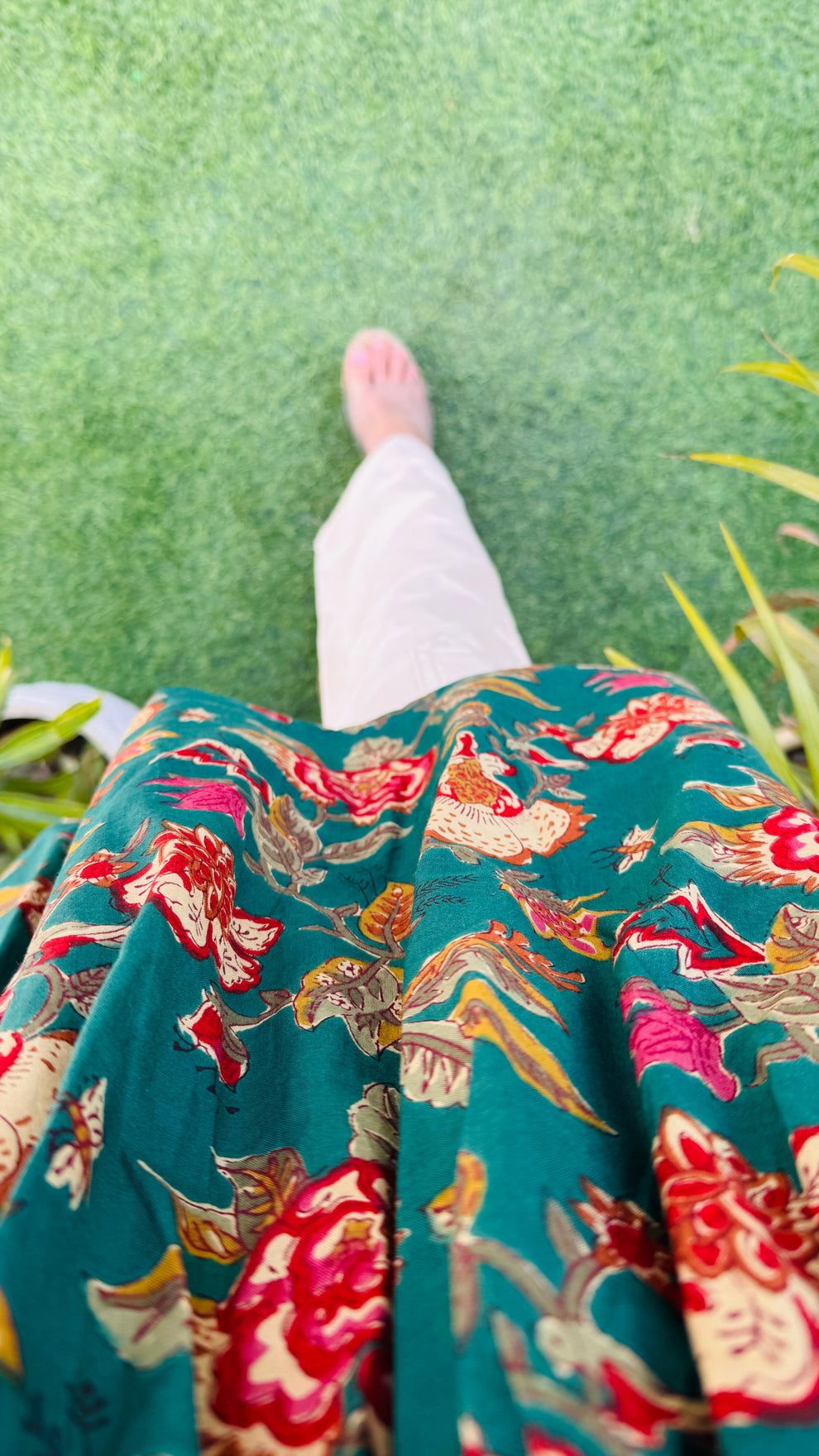 Cotton Flared Bottle Green Aliacut Floral Print Peplum Top