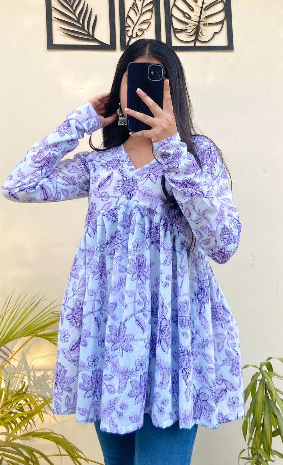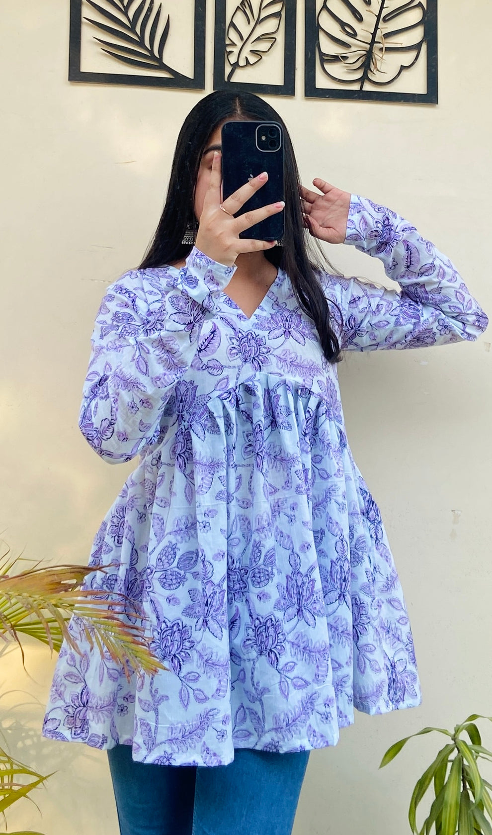 Cotton White & Lavender Flared Aliacut Peplum Top